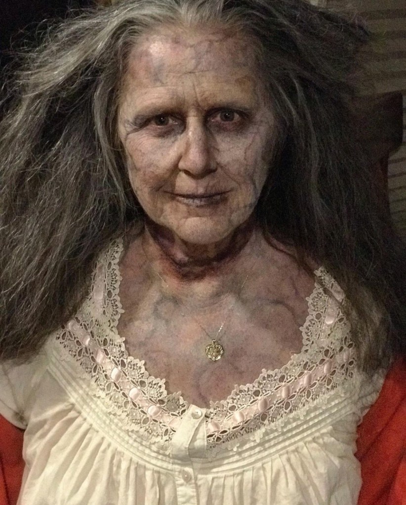 For her screen credits, take a peek at her profile on IMDB and you’ll find she is in some fantastic company. She has worked with the likes of Jason Douglas, who boasts acting credits in Dropa, The Walking Dead, and Jack Reacher; Josh Bass, who directed her in her first small local film, a satire called Ninjews: Goy-L Trouble. In 2012 she appeared in her first feature film, Backroad and formed a lasting friendship with director Wayne Slaten. Helpful advice from Bass later helped her land a role in 2017 in Season 2 of the AMC series Preacher as Gran’Ma. The audition for The Dark and the Wicked came along in the fall of 2018, leading her to cross an item off her performance bucket list: performing a scene as an older woman, completely nude.