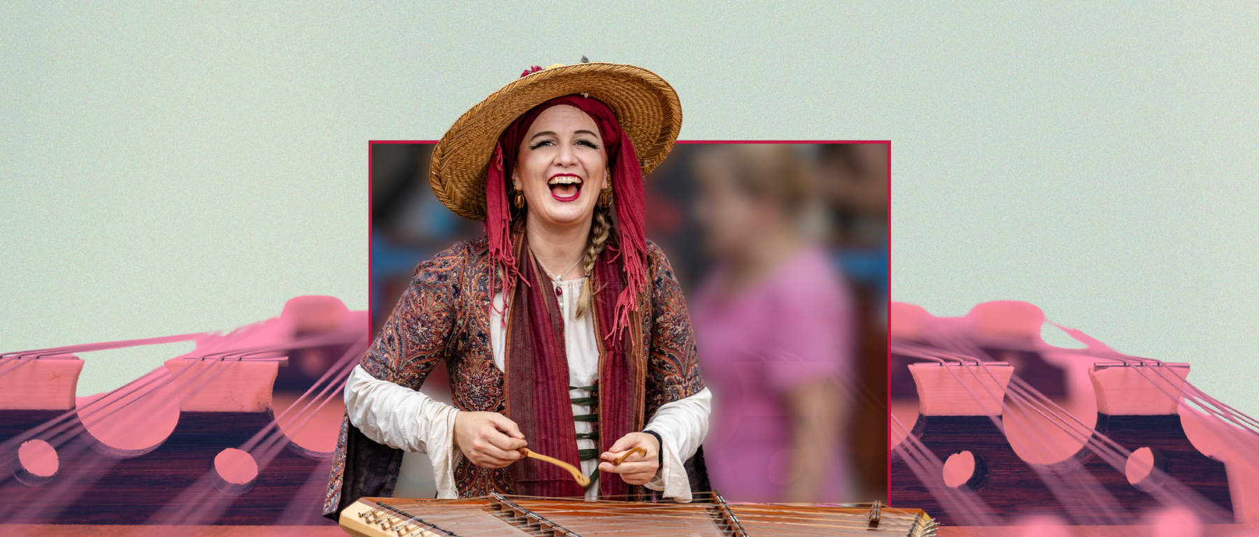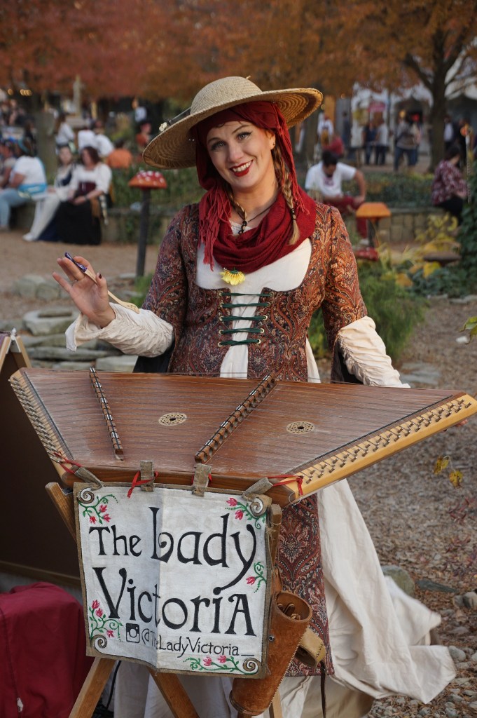 From the walkway in front of her patron’s shop, Lady Victoria entertains passersby with bright and energetic music from an odd trapezoidal shaped box with strings she hits with two delicately shaped hammer shaped wooden sticks. The unfamiliar instrument produces a sound not quite like a piano, not quite like a harp, and not quite like a guitar. Each tap of the hammers brings more visitors to a standstill. At a quick listen, it sounds like traditional folk or Celtic music. Or is it something else? But wait, is that a modern song? Or a traditional song?