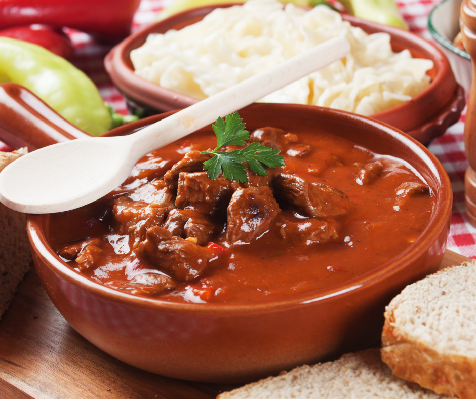 Return beef to Dutch oven. Add paprika, salt, and pepper, stirring well until combined.