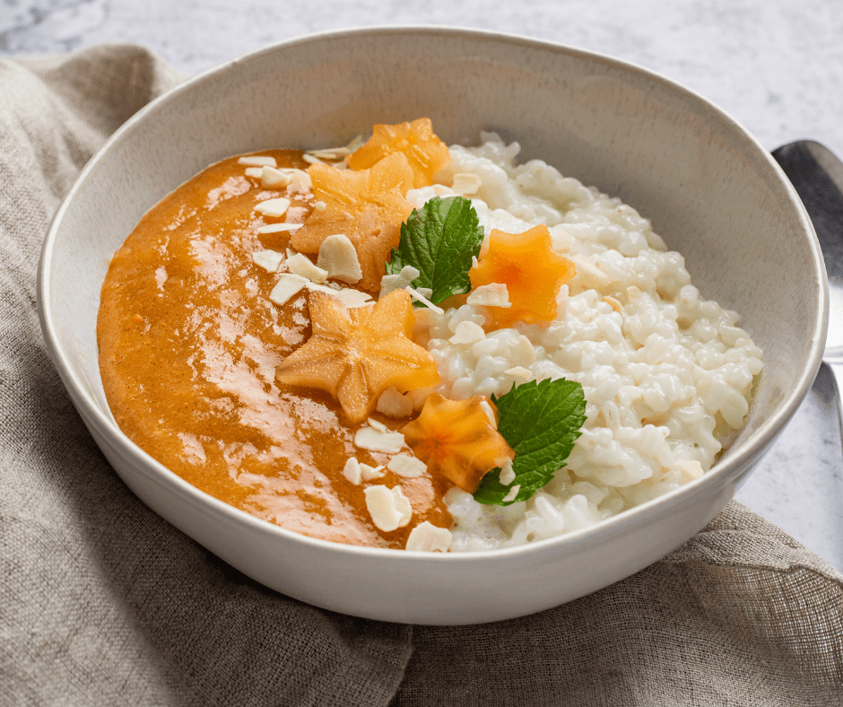 - Done! When the rice porridge looks creamy, but like all of the milk has been absorbed, you’re done! Ladle it into big bowls, and serve with cinnamon, a pad of butter and (if you’d like to) some fresh or frozen berries.You can add an almond, and the lucky person who finds it will have good fortune!
