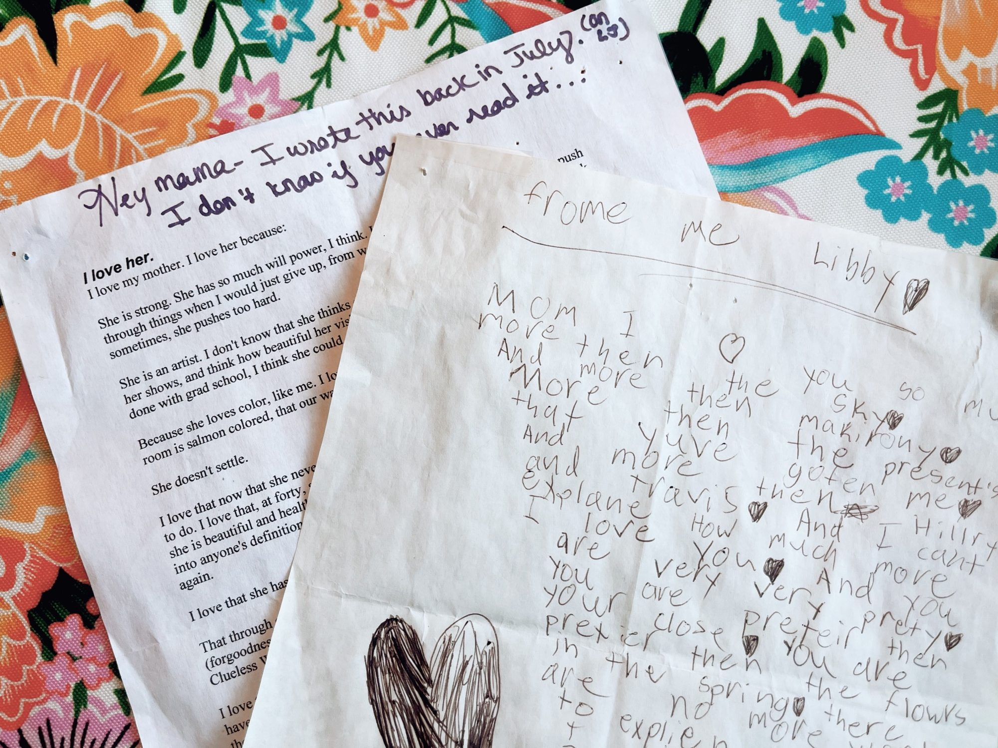 The lyrics to Grant’ song, “Heirlooms,” have been close to my heart since my teen years. My treasures? A handmade quilt lovingly cross-stitched and quilt-stitched by my great-grandmother. A blown glass vase gifted to me from artist Jodi Bove at the Texas Renaissance Festival to commemorate my years as the Craft Director. These notes from my daughters, each now at least 20 years old, they’ve hung in my closet for decades reminding me each morning of the joy of being loved.