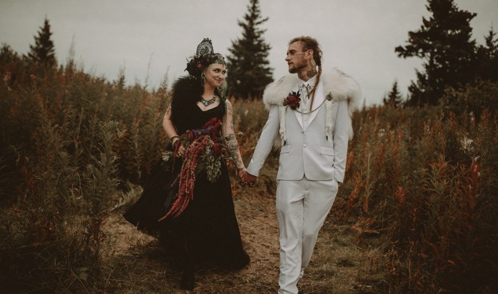 Wedding in the Wilds of Alaska: Pagan Vibes and Lush Textiles. Gorgeous.